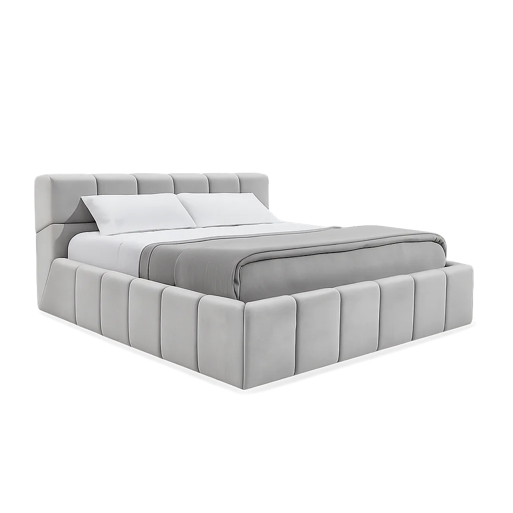 The Brix Light Grey King Size Bed in Dubai combines elegance with modern design. Featuring a sleek upholstered headboard and footboard king bed UAE, this bed adds a contemporary touch to any bedroom. Crafted from durable MDF and wood king bed with fabric upholstery in UAE, it ensures long-lasting quality and comfort.