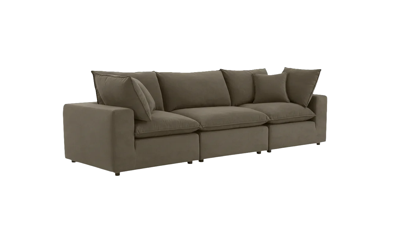 Part of the bestselling Cali Chocolate Brown Performance Velvet Sofa is crafted for ultimate comfort and elegance. Upholstered in high-quality performance velvet, it features deep seating and plush cushions that invite relaxation. The modular design with pre-installed brackets allows for easy assembly and flexible configuration, while reversible back cushions and removable seat covers provide convenience and versatility. Finished with sleek black legs and accompanied by throw pillows, this sofa transforms any living area into a stylish, luxurious retreat.