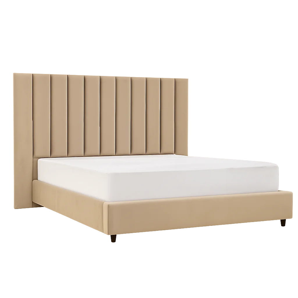 Bring timeless elegance and comfort to your bedroom with the Crum Beige King Bed. Upholstered in soft beige velvet and supported by a sturdy solid wood frame, this bed combines modern luxury with durability.