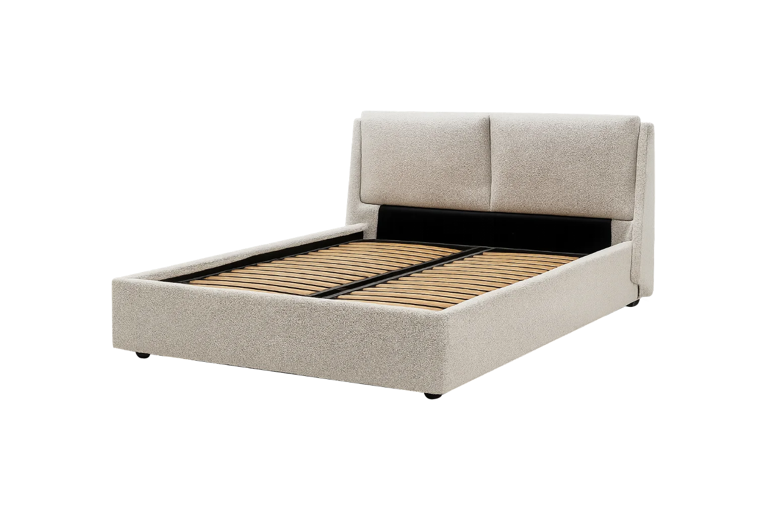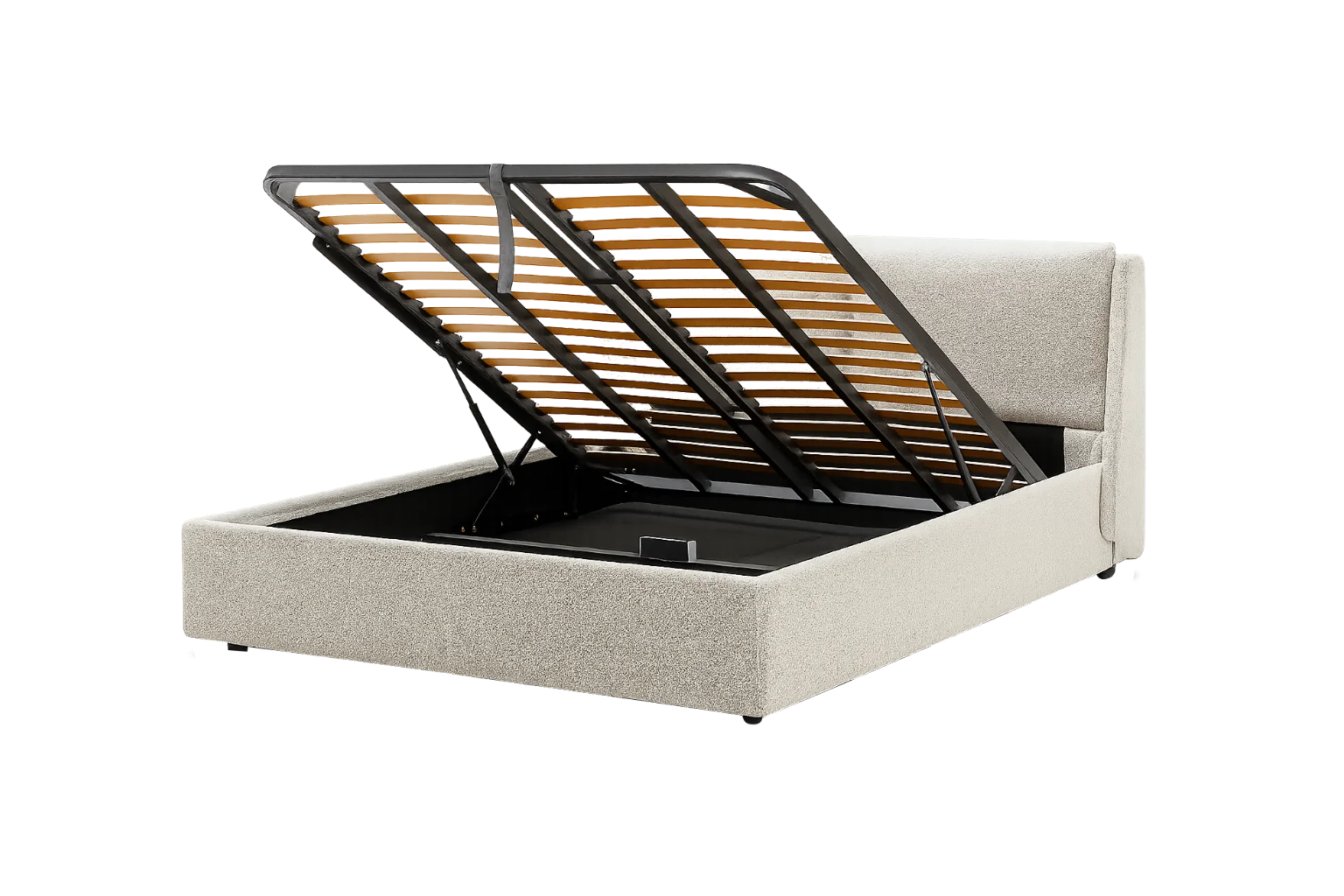 Redefine bedroom elegance with the Lorenzo Bed With Storage – Salt & Pepper. Upholstered in premium polyester fabric, this bed features a minimalist design with a soft, cushioned headboard for comfort. The hydraulic storage system offers effortless access to hidden under-bed space, perfect for organizing bedding and essentials.