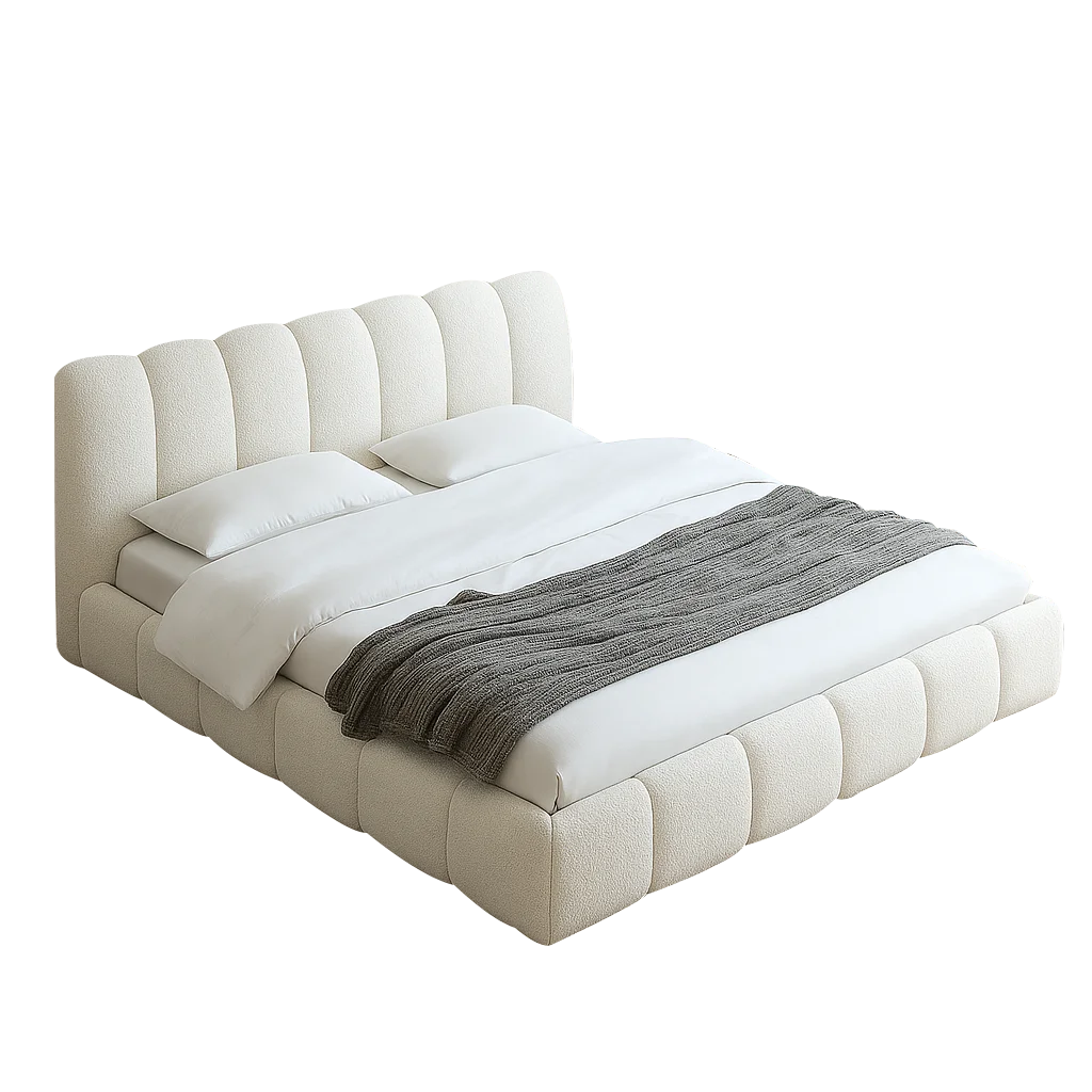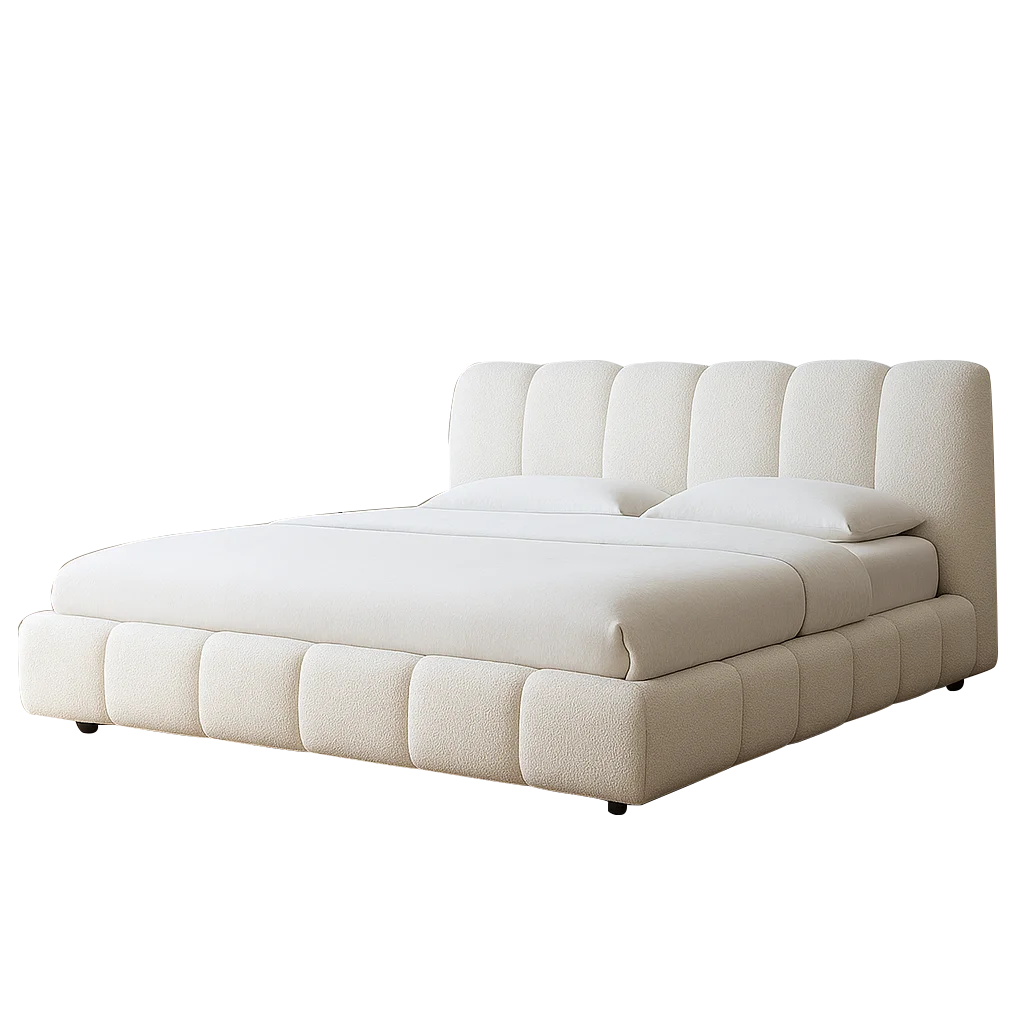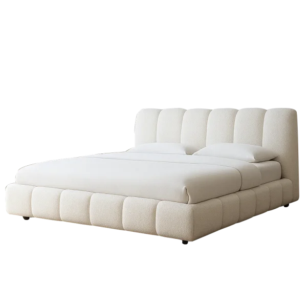 The Tactic Queen Bed is designed for those who value simplicity and elegance in their bedroom. Crafted with a sturdy wooden frame and upholstered in soft beige boucle fabric, this queen-size bed brings both comfort and style.